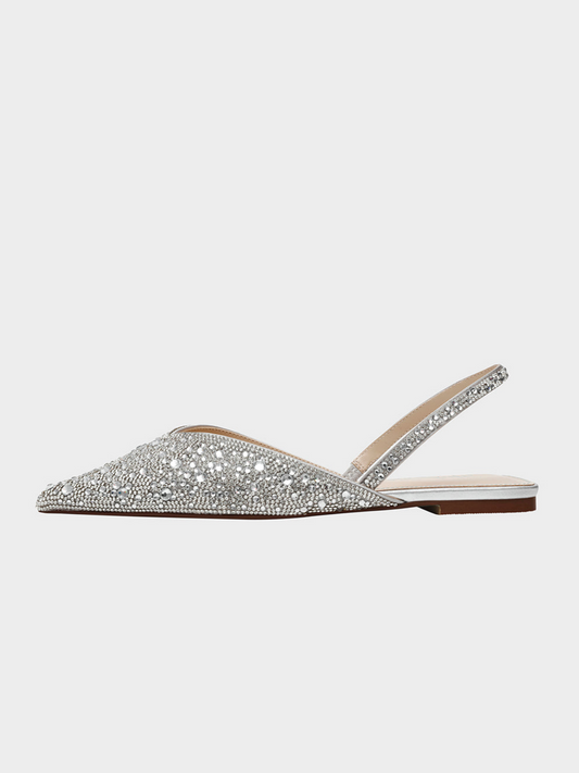 Metallic Silver Pointed-Toe Rhinestone Slingback Ballet Flats