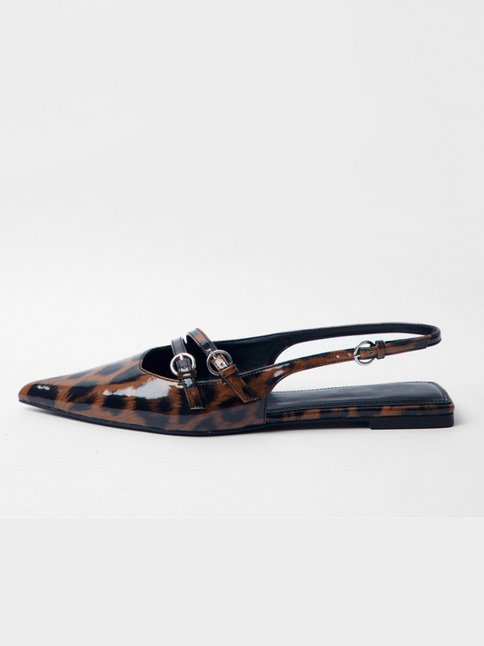 Leopard Patent Pointed-Toe Double Strap SlingBack Flats