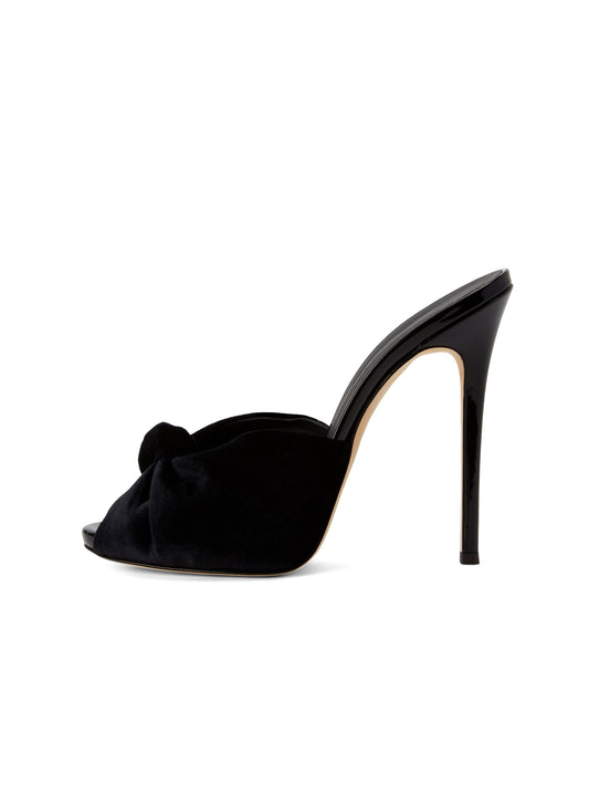 Black Velvet Peep Round-Toe Backless Slip-On High Heels