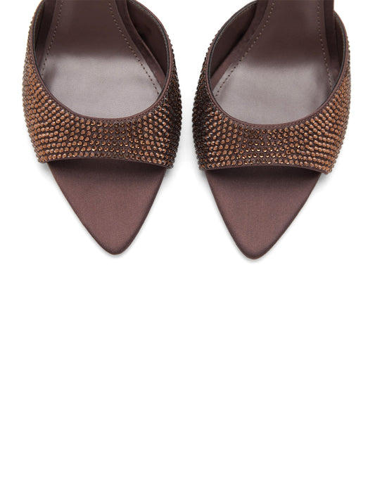 Chocolate Satin Pointed-Toe Simple Rhinestones High Heels Sandals