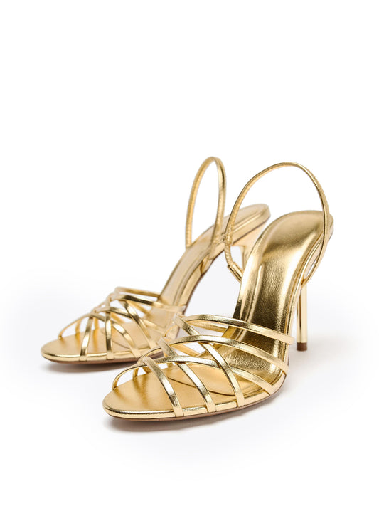 Metallic Gold Round-Toe Front Crossover Straps Slingback High Heels