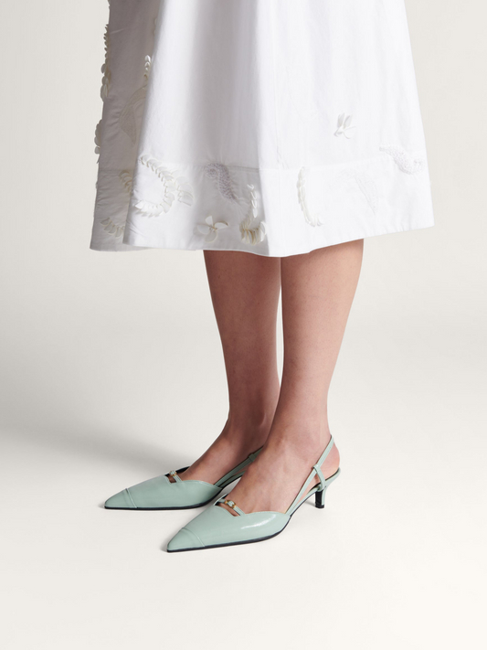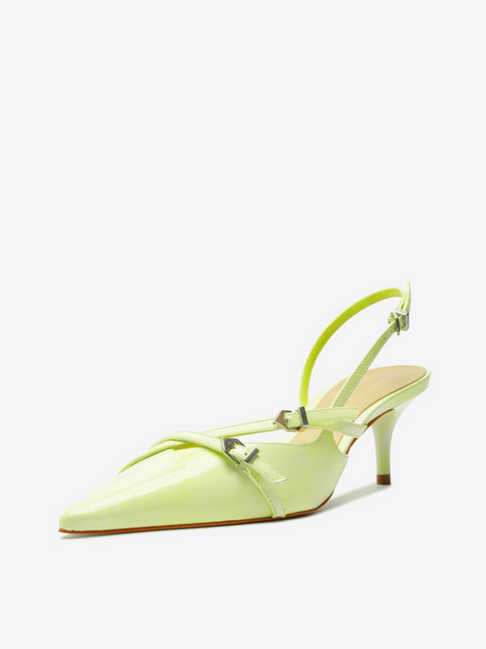 Mint Green Buckled Strap Pointy Kitten Heels Slingback Pumps