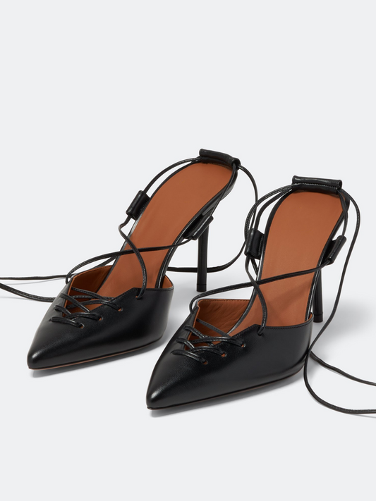 Black String Lace Up Gladiators Pointy Stiletto Heels Pumps