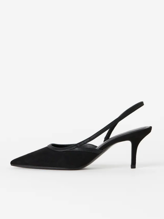 Black Faux Suede Pointy Kitten Heels Pumps Slingbacks