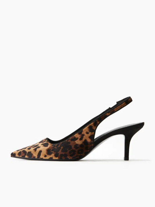 Leopard Pattern Pointy Kitten Heels Pumps Slingbacks