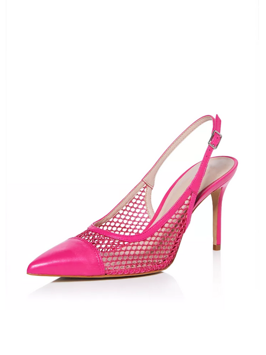 Hot Pink Buckle Pointed-Toe Stiletto Heel Slingback Pumps in Mesh & Vegan Leather