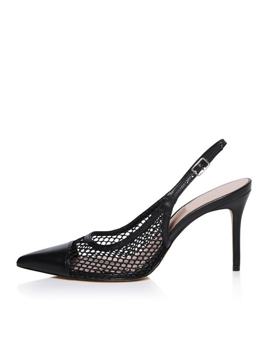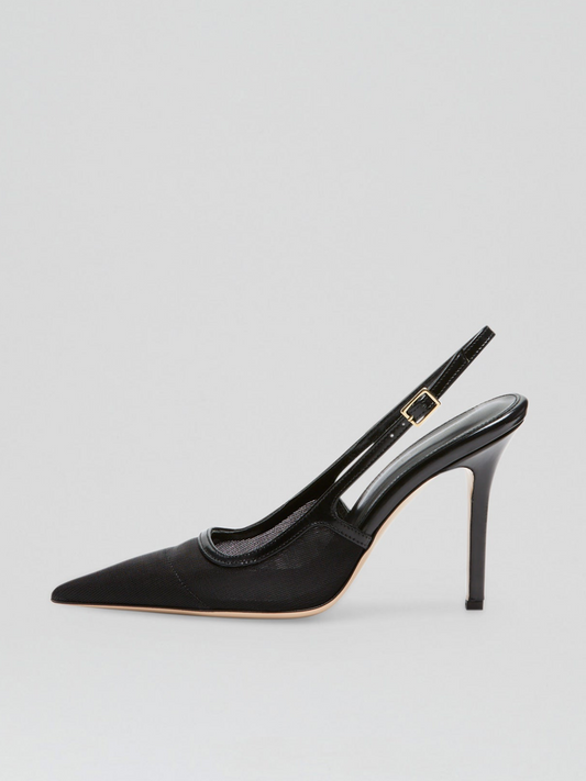 Black Mesh Patchwork Pointy High Heels Slingback Pumps