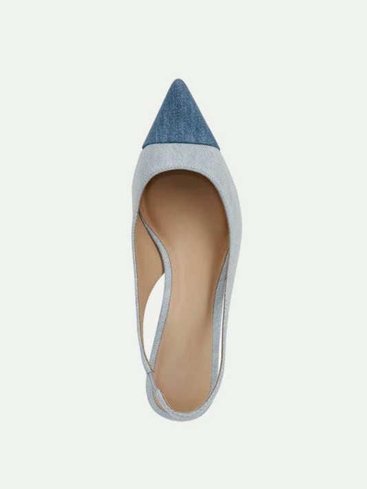 Denim Blue Patchwork Pointy High Heels Slingback Pumps