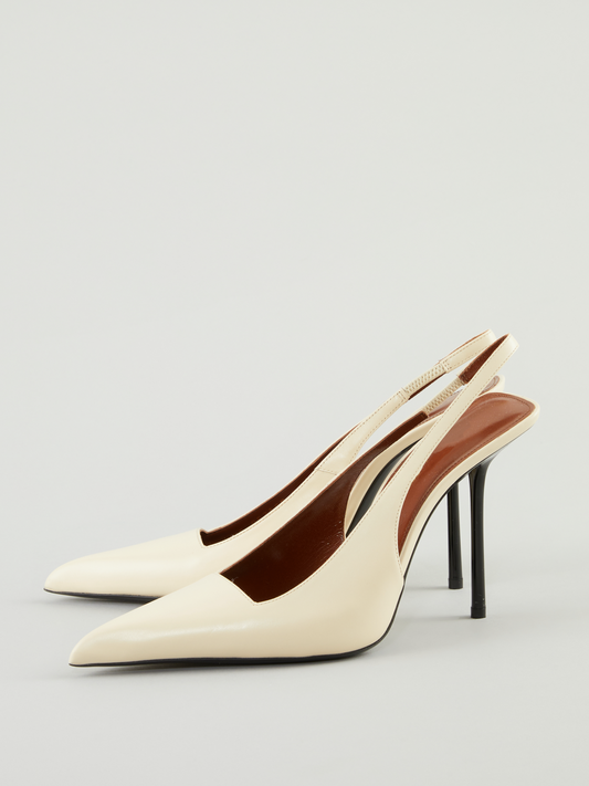 Beige Pointy Slingback Stiletto Pumps with Buckled Strap
