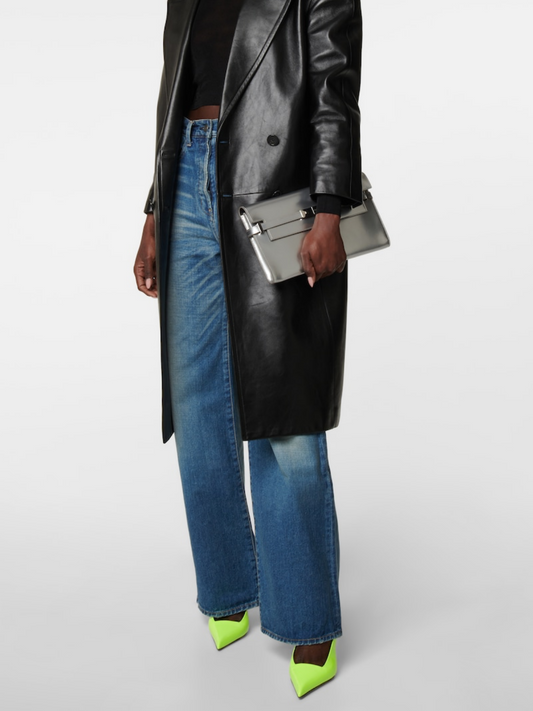 Patent Chartreuse Green Pointy Slingback Stiletto Pumps with Buckled Strap