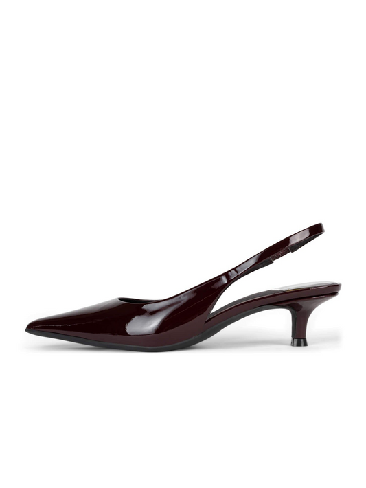 Dark Burgundy Patent Pointy Comfy Kitten Heels Slingback Pumps For Women