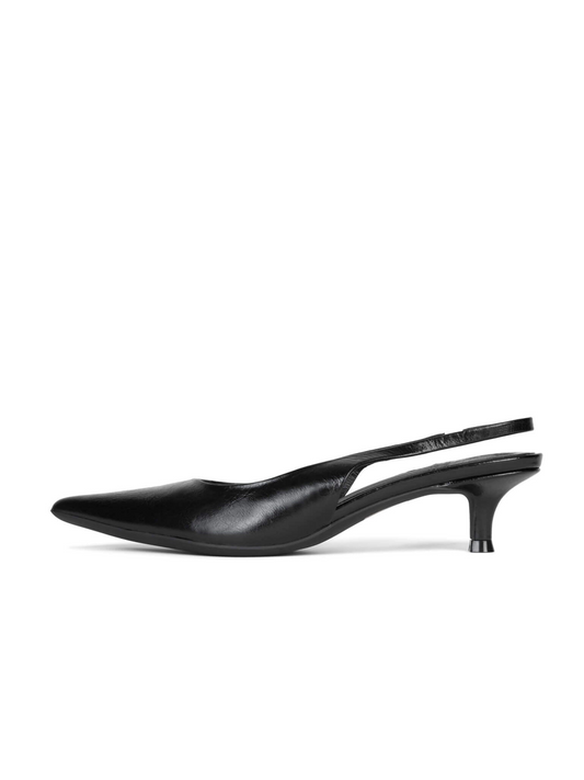 Black Crinkle Patent Pointy Comfy Kitten Heels Slingback Pumps For Women