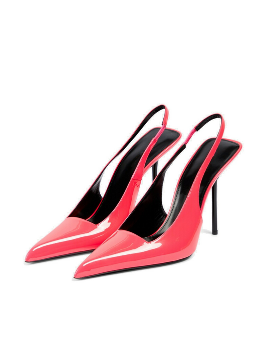 Patent Cerise Pink Pointy Slingback Stiletto Pumps with Buckled Strap