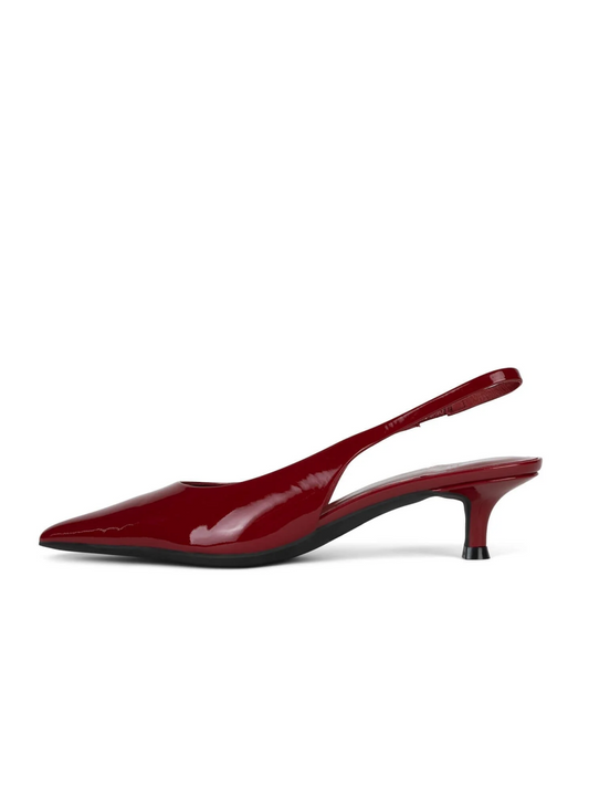 Red Patent Pointy Comfy Kitten Heels Slingback Pumps For Women