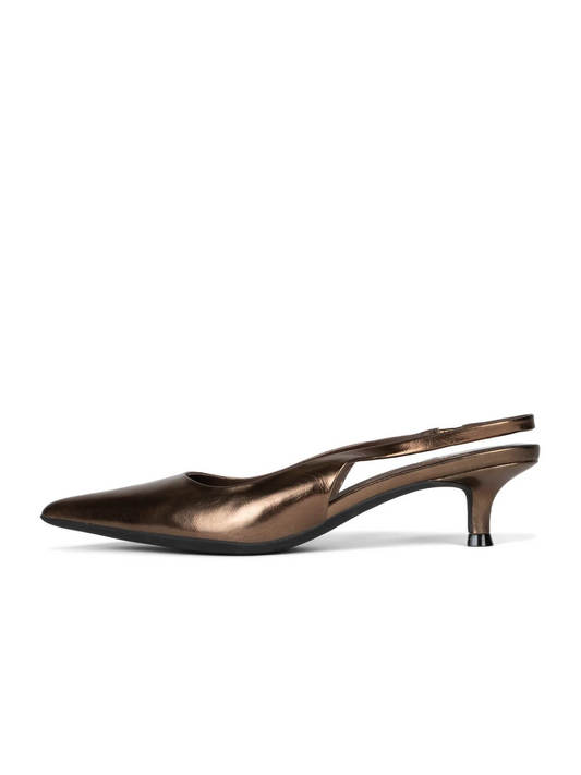 Women Metallic Bronze Crinkle Pointy Kitten Heels Slingback Pumps