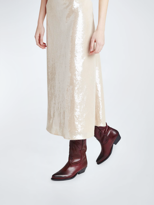 Snip-Toe Embroidery Tall Half-Zip Knee High Cowgirl Boots - White