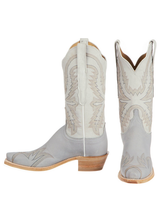 Contrast Ivory And Gray Snip-Toe Classic Embroidery Wide Calf Tall Knee High Cowgirl Boots
