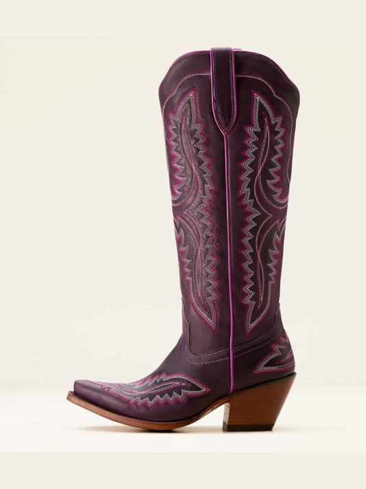 Dark Purple Snip-Toe Wing Embroidery Wide Calf Tall Knee High Cowgirl Boots