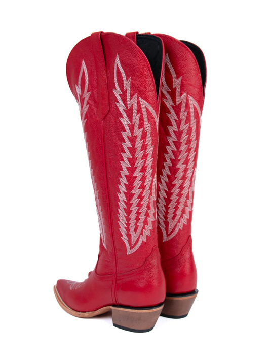 Red Embroidery Snip-Toe Half-Zip Western Knee High Tall Boots
