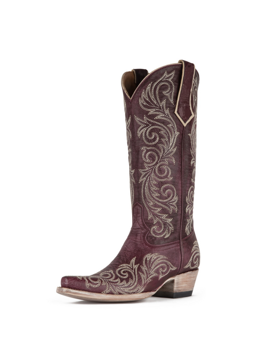 Pansy Purple Snip-Toe Embroidery Wide Mid Calf Cowgirl Tall Boots