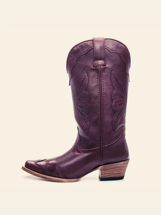 Eggplant Purple Wing Applique Snip-Toe Wide Mid Calf Cowgirl Tall Boots