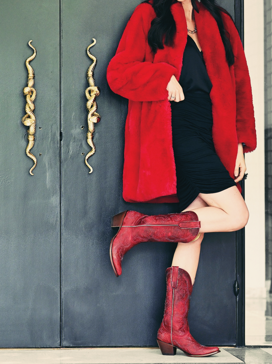 Red Embroidered Pointed-Toe Wide Mid Calf Western Cowgirl Boots