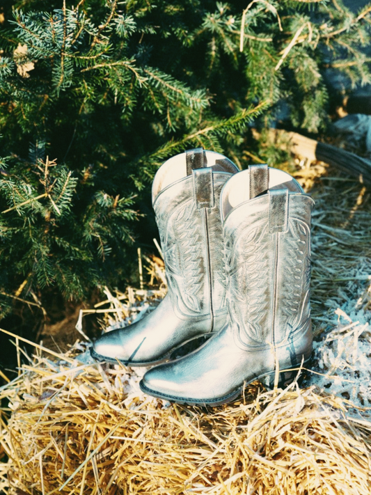 Metallic Silver Thunderbird Embroidery Inlay Almond-Toe Wide Mid Calf Western Boots