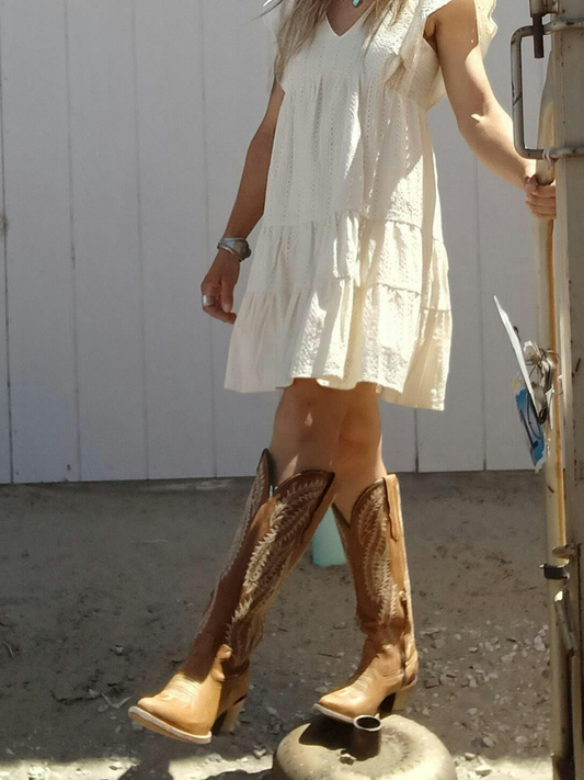 White Snip-Toe Studded Rhinestone Classic Mid Calf Cowgirl Boots