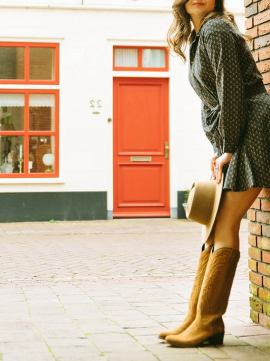 Honey Snip-Toe Half-Zip Leaves Embroidery Mid Calf Cowgirl Boots