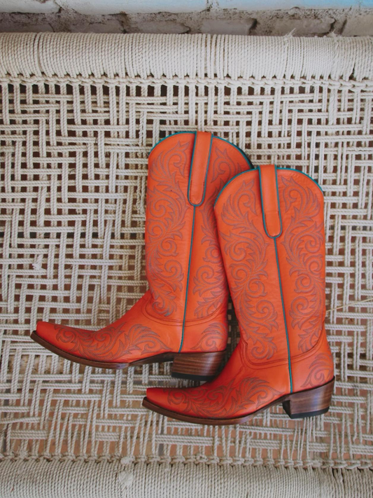 Orange Snip-Toe Embroidery Mid Calf Cowgirl Boots