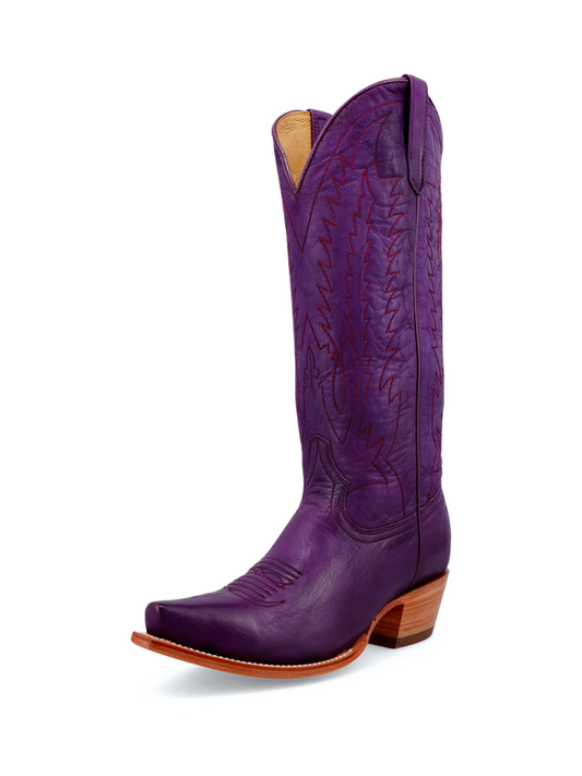 Purple Distressed Embroidery Snip-Toe Mid Calf Western Boots Cowgirl Boots