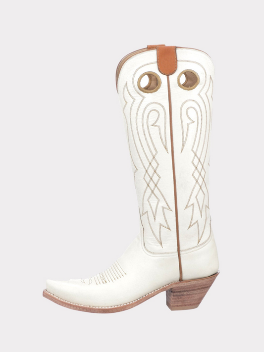 Ivory Snip-Toe Embroidery Cutout Wide Mid Calf Tall Cowgirl Boots