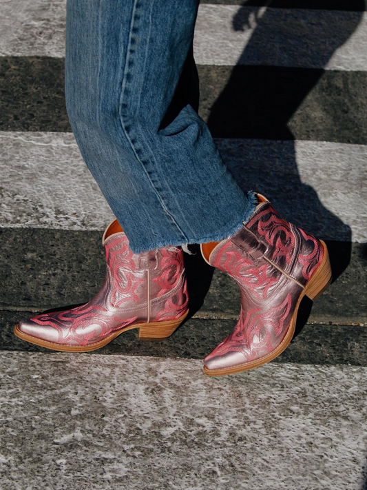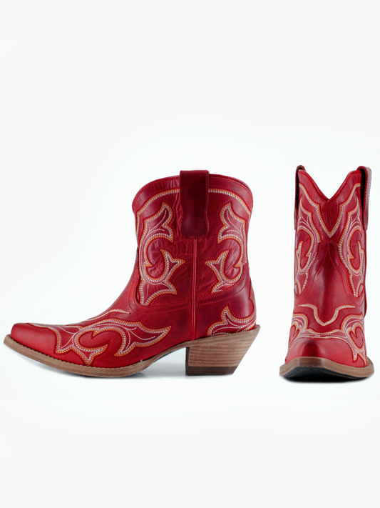 Embroidery Snip-Toe Wide Mid Calf Cowboy Boots For Women - Red