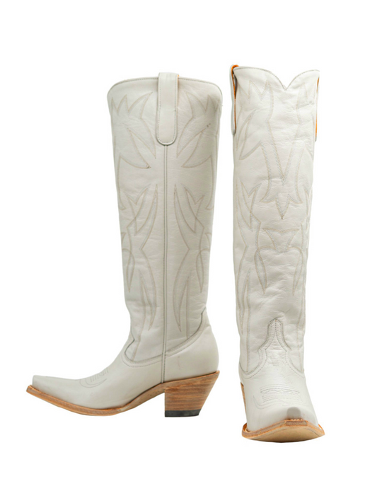 White Embroidery Snip-Toe Wide Calf Cowgirl Boots Knee High Tall Boots