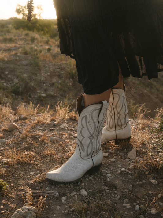 White Embroidery Crinkle Snip-Toe Wide Mid Calf Cowgirl Tall Boots