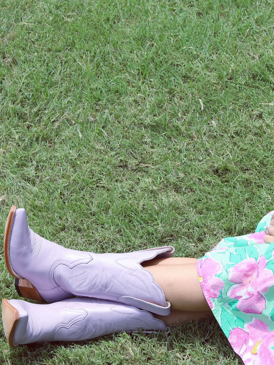 Western Embroidery Snip-Toe Mid Calf Cowgirl Boots - Lavender