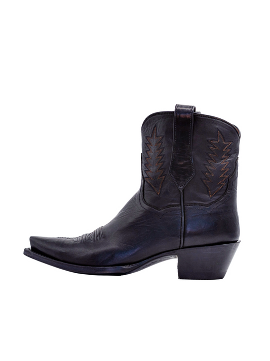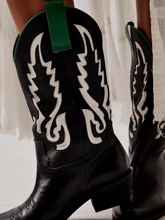 Black Almond-Toe Inlay Wide Mid Calf Cowgirl Boots