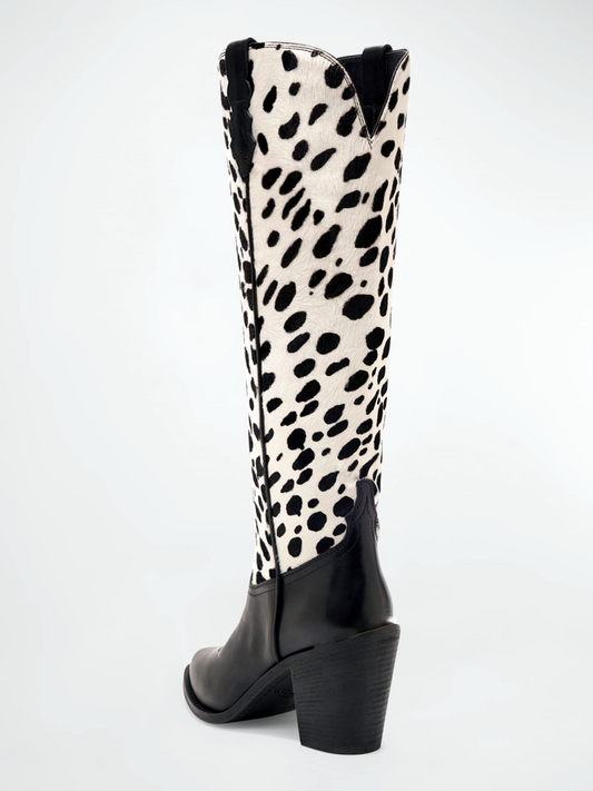 Black Contrast Vegan Leather And Faux Fur Wide Mid Calf Cowgirl Boots