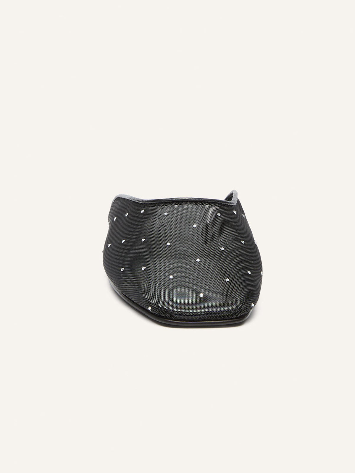 Black Square-Toe Crystal Mesh Flats