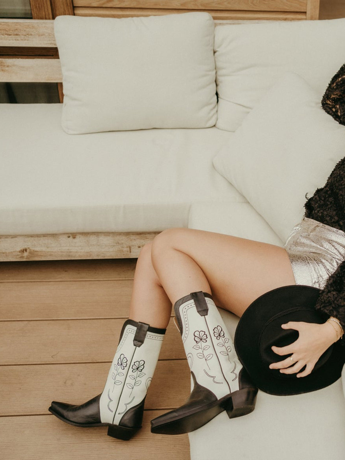 This eye-catching mid-calf boot comes in a sweet chocolate, adorned with playful stud details and floral applique, adding a touch of royal elegance. Slip them on, and you'll instantly experience the perfect blend of comfort and style!