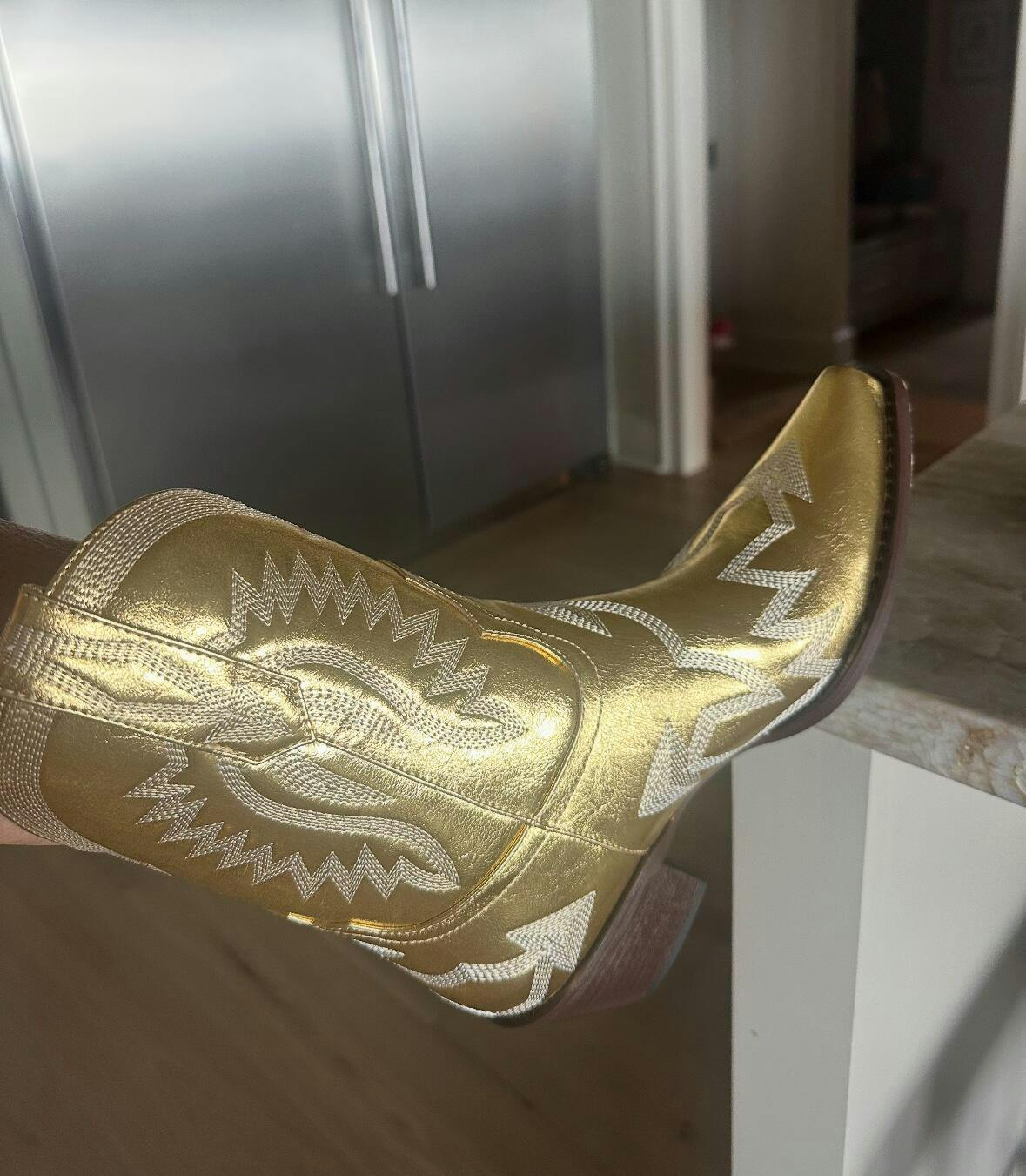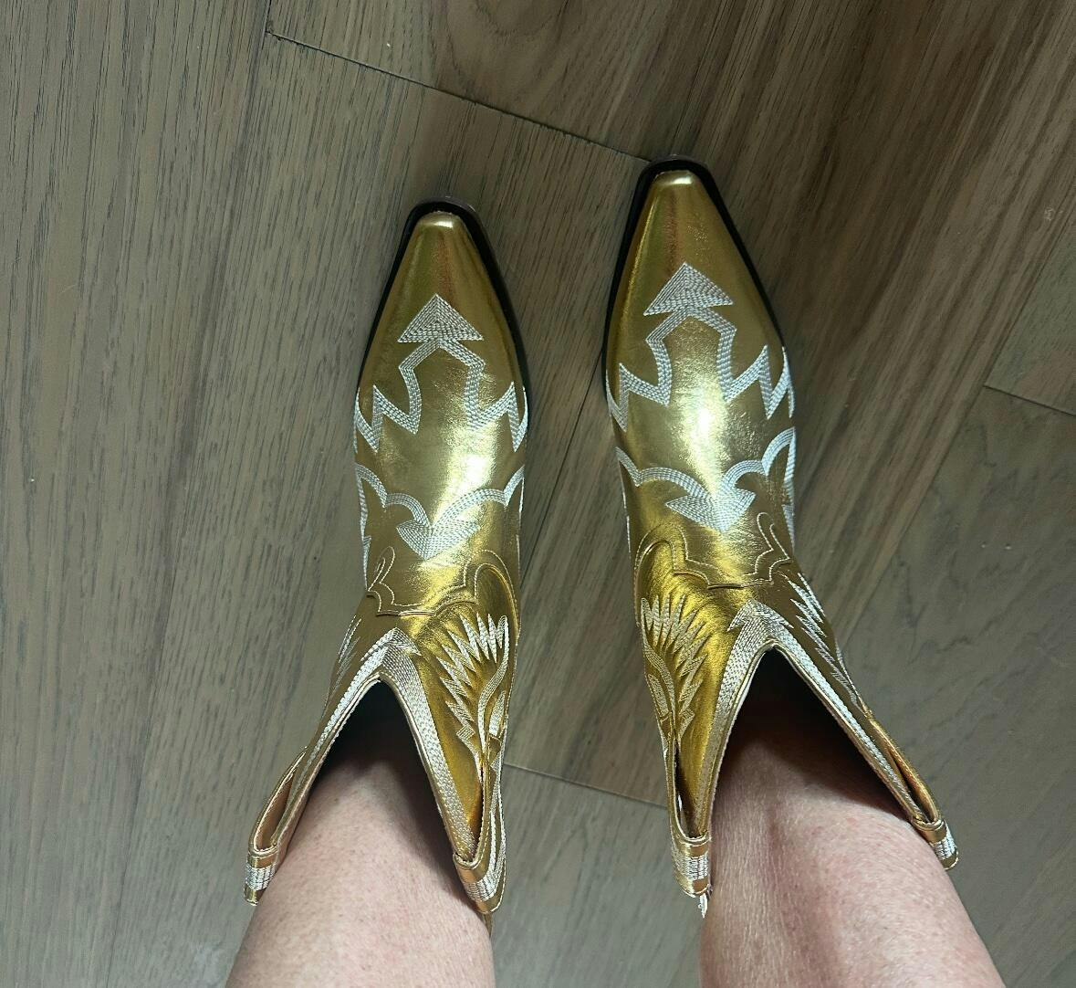 Metallic Embroidery Snip-Toe Cowgirl Booties - Gold