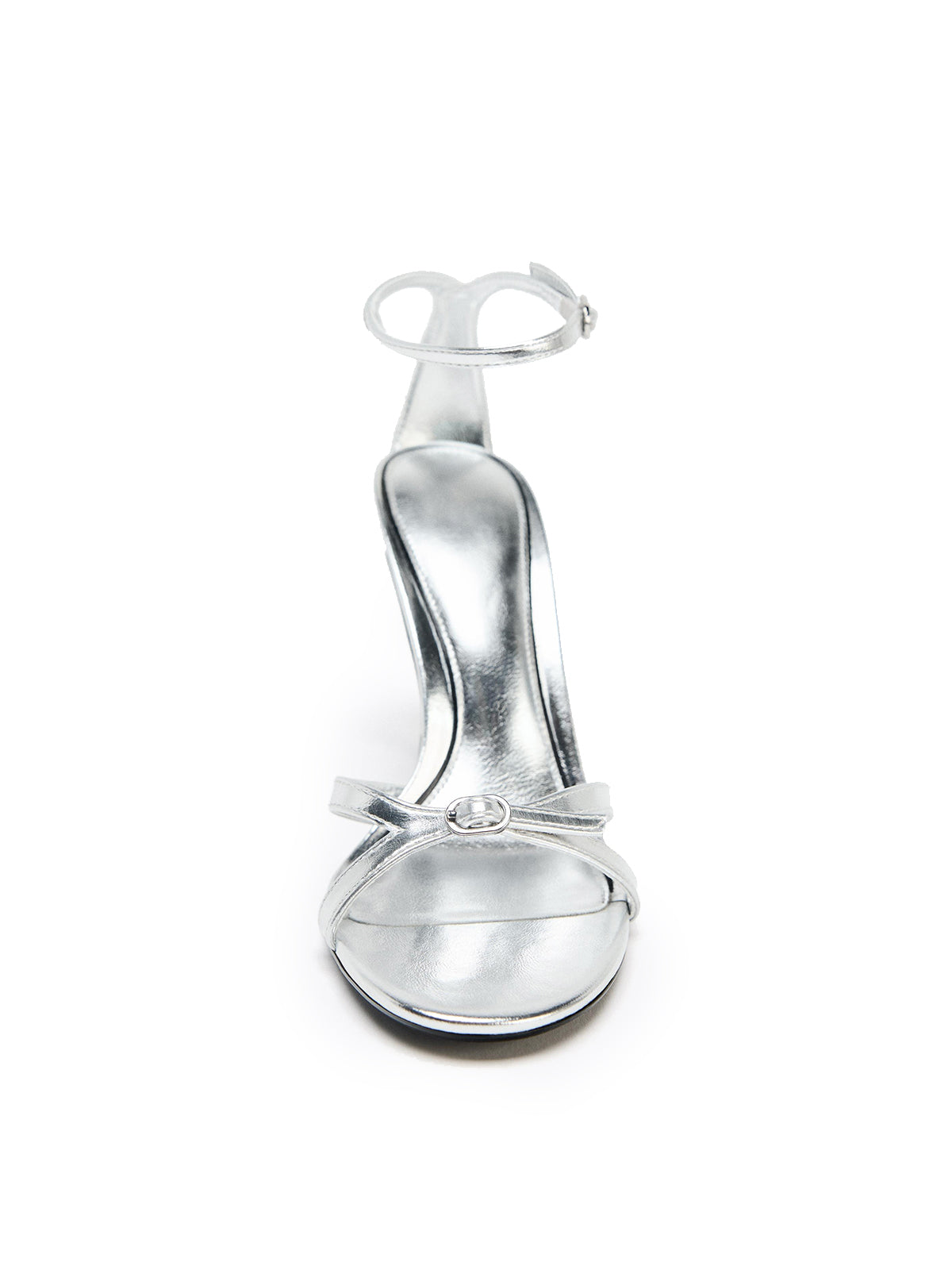 Metallic Silver Round-Toe Front Straps And Ankle Strap High Heels