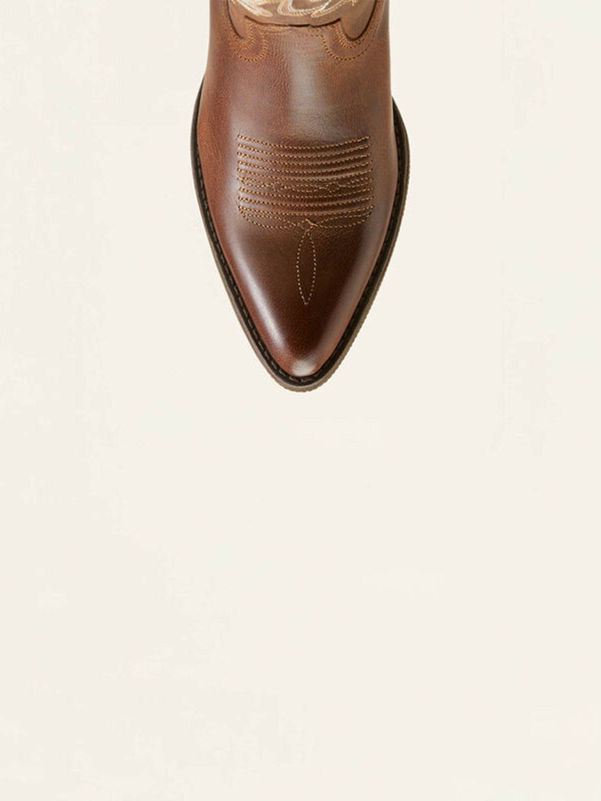 Mid Calf Almond-Toe Embroidery Cowgirl Boots - Brown