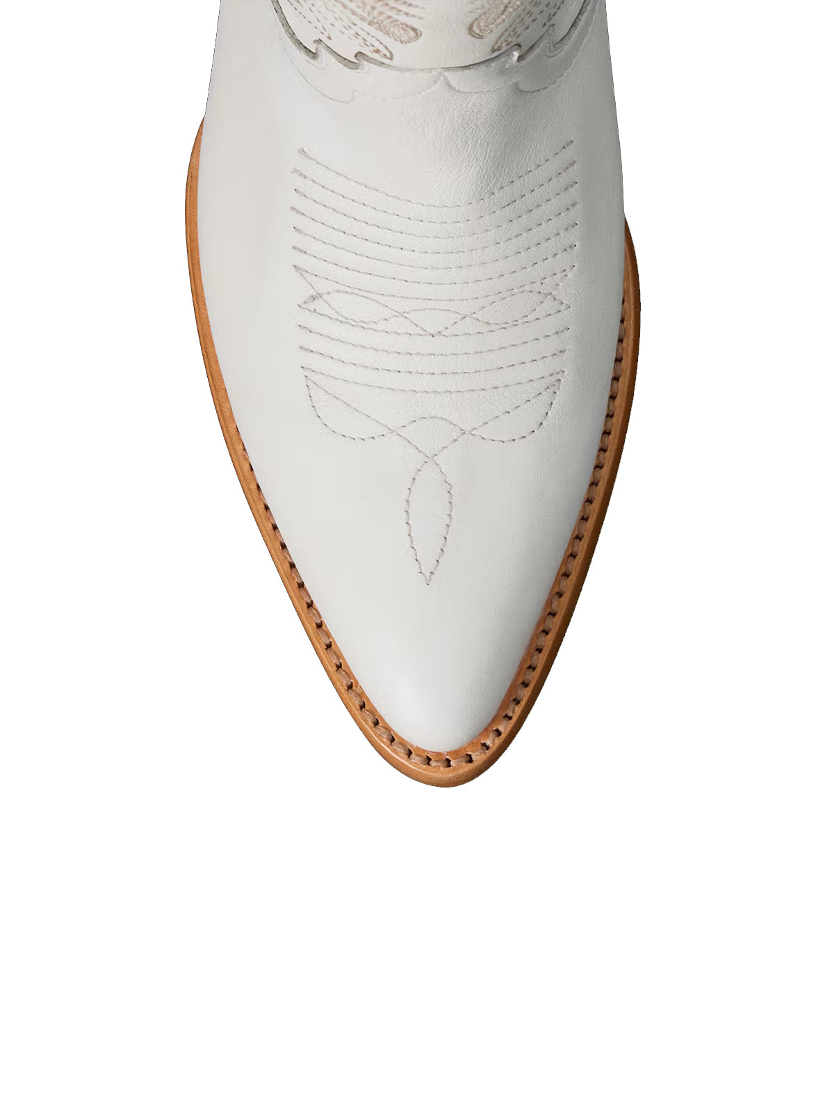Western Embroidery Almond-Toe Tall Knee High Cowgirl Boots - White