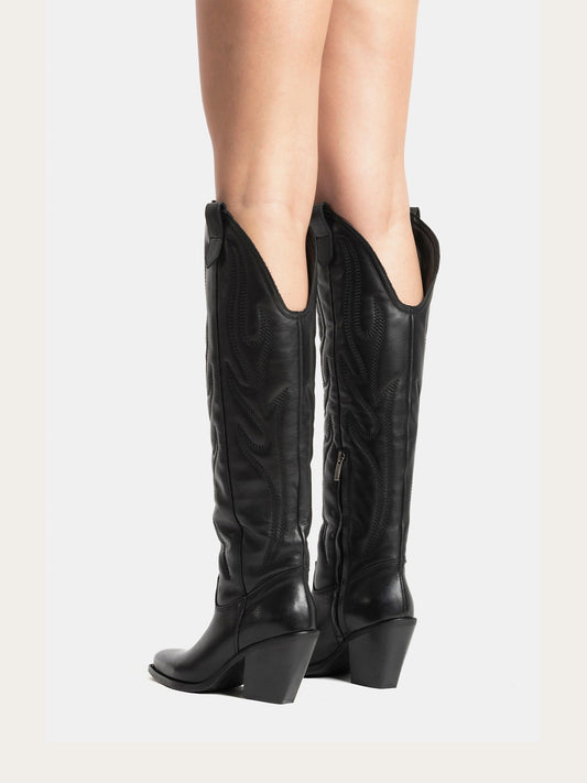 Black Classic Snip-Toe Embroidery Half-Zip Knee High Tall Cowgirl Boots