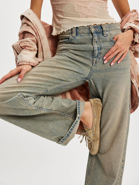 Camel Faux Suede Round-Toe Lace-Up Boat Shoes Flats