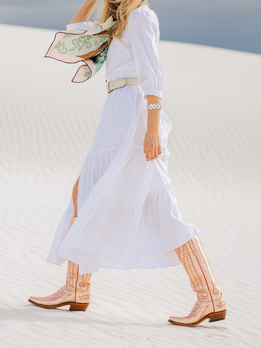 Metallic Snip-Toe Embroidery Wide Calf Knee High Tall Cowgirl Boots - Rose Gold