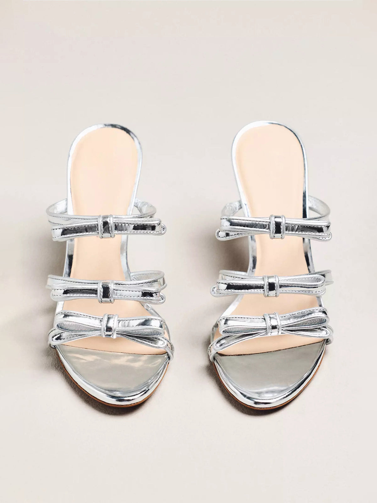 Playful and feminine, these heels feature a peep round-toe design paired with charming triple-bow details at the front. The backless silhouette adds a light, effortless feel, while the chic tone keeps the look versatile and stylish—perfect for parties, dates, or chic everyday statements.