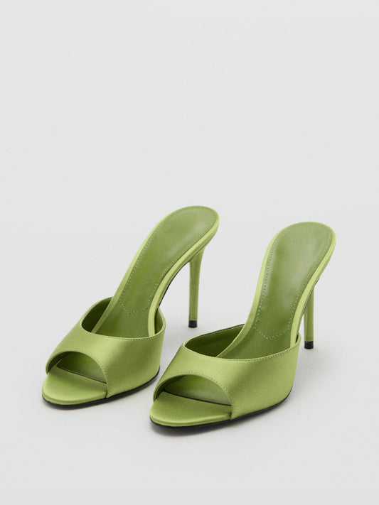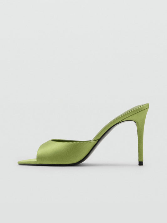 Butter Yellow Elegant Floral Satin Round-Toe Backless High Heels