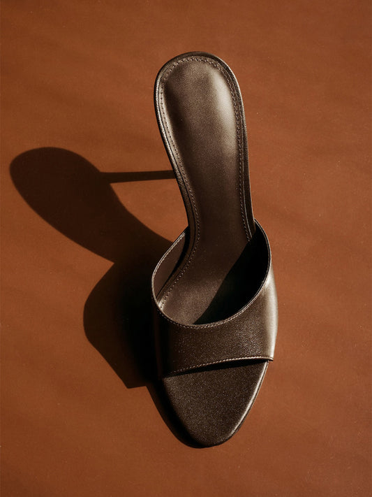 Sliver Metallic Round-Toe Backless High Heels